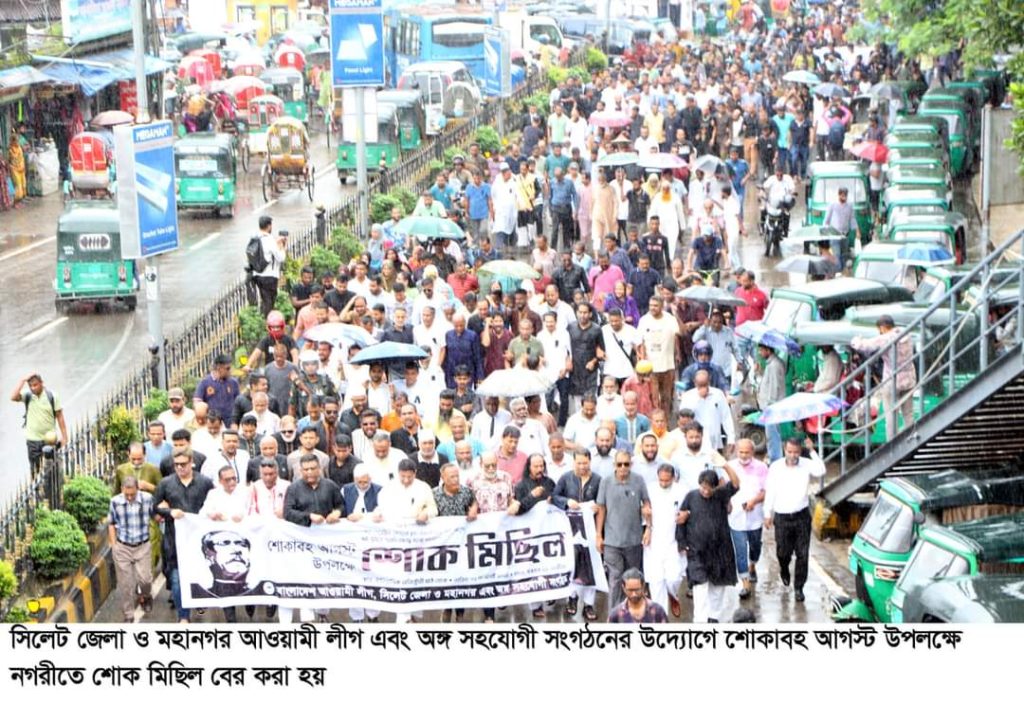 শোকাবহ আগস্টের প্রথম দিনে সিলেট জেলা ও মহানগর আওয়ামী লীগ এবং অঙ্গ ও সহযোগী সংগঠনের নেতাকর্মীরা সিলেটে শোক মিছিল করেছে।