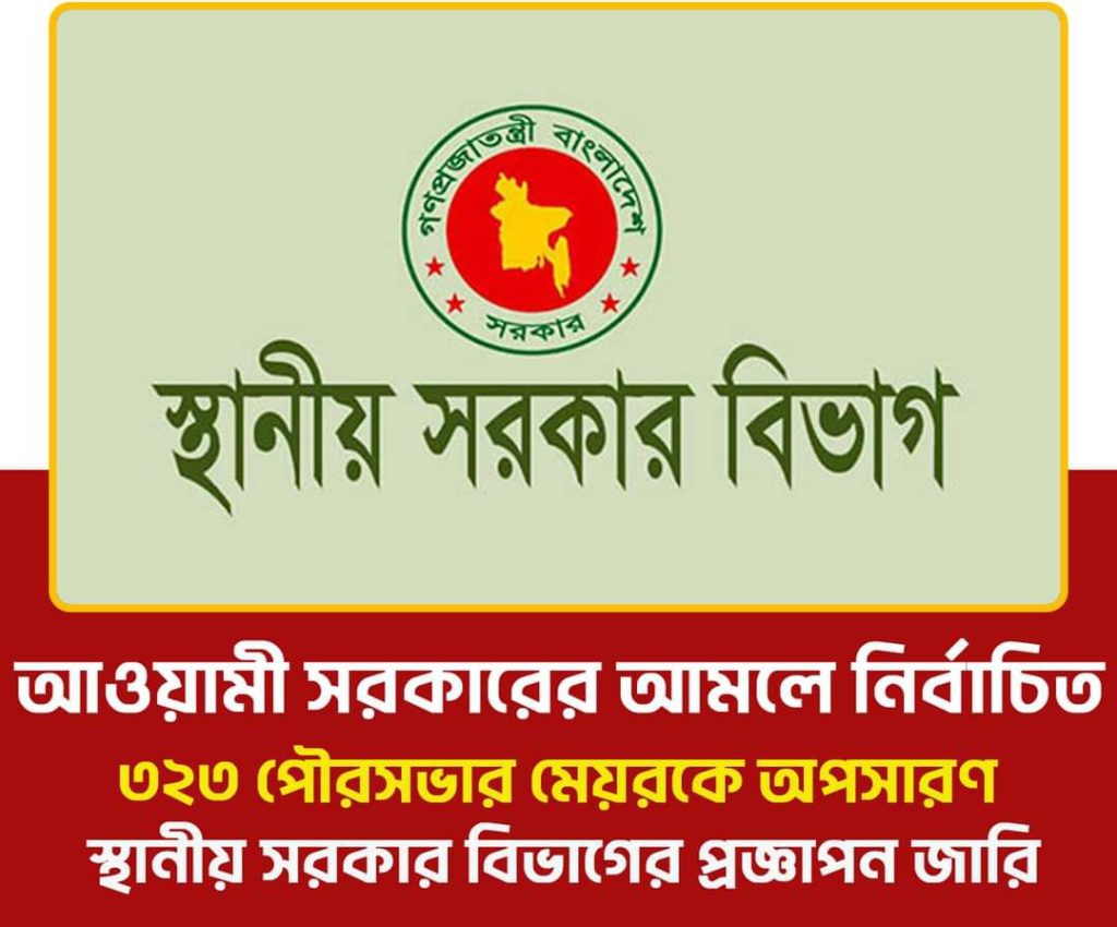 আওয়ামী সরকারের আমলে নির্বাচিত বিয়ানীবাজারসহ ৩২৩ পৌরসভার মেয়রকে অপসারণ করে প্রজ্ঞাপন জারি করেছে স্থানীয় সরকার বিভাগ।