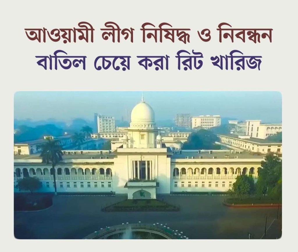 বৈষম্যবিরোধী ছাত্র আন্দোলনের সময় ছাত্র-জনতাকে নির্বিচার হত্যাকাণ্ডে জড়িত থাকার দায়ে আওয়ামী লীগকে নিষিদ্ধ করে দলটির নিবন্ধন বাতিল চেয়ে করা রিট খারিজ করে দিয়েছেন হাইকোর্ট।