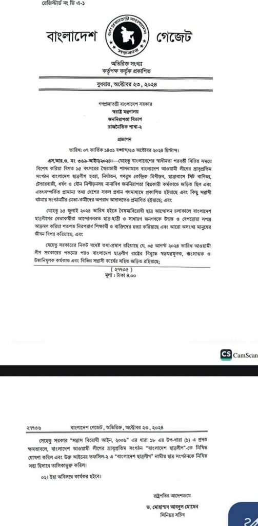 হোম প্রচ্ছদছাত্রলীগ নিষিদ্ধ করে প্রজ্ঞাপন বিয়ানীবাজার বার্তা ডেস্ক প্রকাশিত হয়েছে : ২৩ অক্টোবর ২০২৪, ৯:৩৩ অপরাহ্ণ আওয়ামী লীগের ভ্রাতৃপ্রতীম সংগঠন ছাত্রলীগকে নিষিদ্ধ করা হয়েছে।আজ বুধবার স্বরাষ্ট্র মন্ত্রণালয় এই সংক্রান্ত একটি প্রজ্ঞাপন জারি করে।প্রচ্ছদ এর আরও খবর লন্ডনে ক্যারি লাইফ অ্যাওয়ার্ডস পেয়েছে অ্যালকম্ব তান্দুরি সাবেক চেয়ারম্যান এমাদ উদ্দিনের জানাজায় মানুষের ঢল যুক্তরাজ্য প্রবাসী শাহানুর খানের মাতৃবিয়োগ।। জালালাবাদ এসোসিয়েশনের শোক তিলপাড়া ইউনিয়ন ট্রাস্ট ইউকে’র উদ্যোগ: পাকাঘর পেলেন কৃষক আব্দুল মালিক