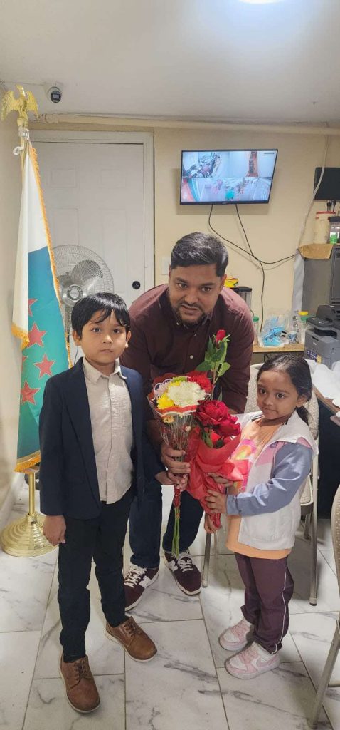 ডা. শিব্বির আহমদ সোহেলকে নতুন প্রজন্মের দুই শিশু ফুলেল শুভেচ্ছা জানাচ্ছে।